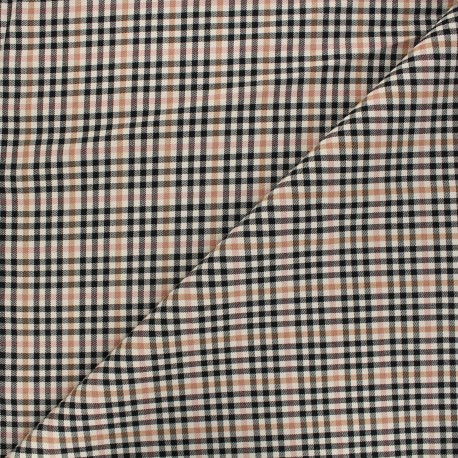 Découvrez notre sélection de tissu gabardine et caquez pour ce tissu bengaline Arthur. De très belle qualité, ce tissu à carreaux noirs et camel sur fond sable vous permettra de confectionner des vêtements résistants et très confortables : jupes, pantalons, blazer…
